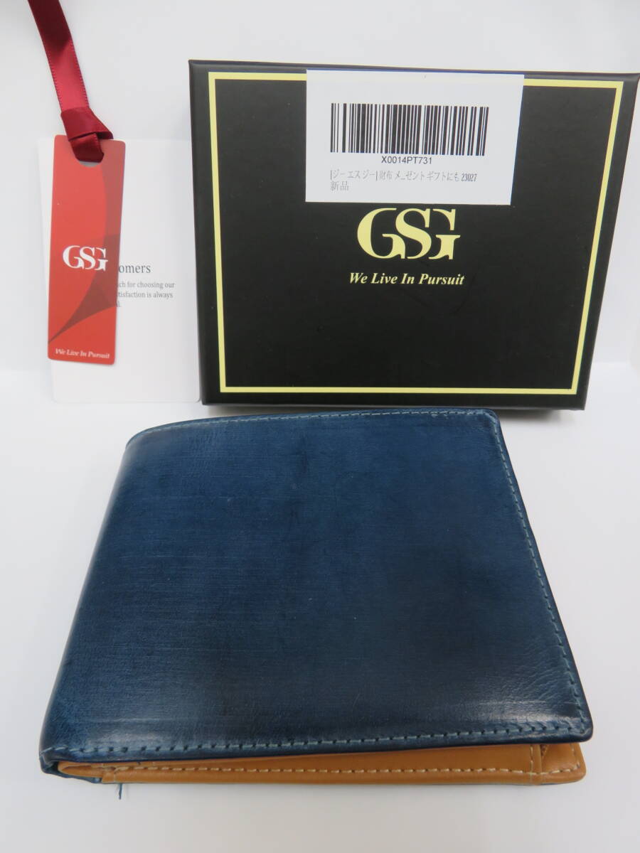 - ●○75978 GSG ジーエスジー 財布 2つ折り 本革 二つ折り 小銭入れ カード入れ ネイビー系○●