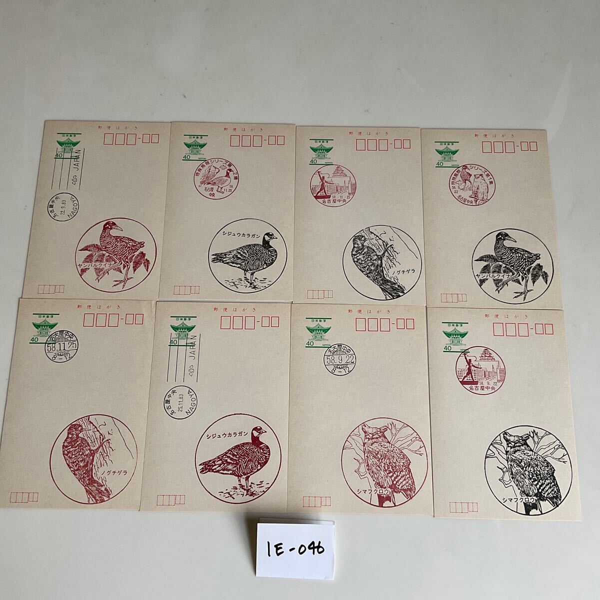 - ★記念はがき★特殊鳥類シリーズ★シマフクロウ★ノグチゲラ★シジュウカラガン★ヤンバルクイナ★蔵出し★1E-046★昭和58年★名古屋中央★