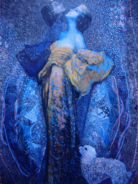 - 二名ノリコ、「祥天」、希少画集・額装画、日本製・新品額縁にて額装致します、状態良好、日本人画家