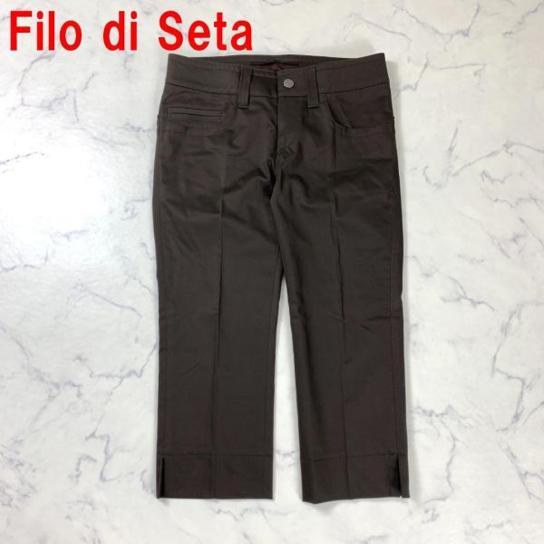 - A2646 フィロディセタ クロップドパンツ 綿 Filo di Seta カジュアルパンツ アンクル丈 コットン ブラウン スリット 茶色 38