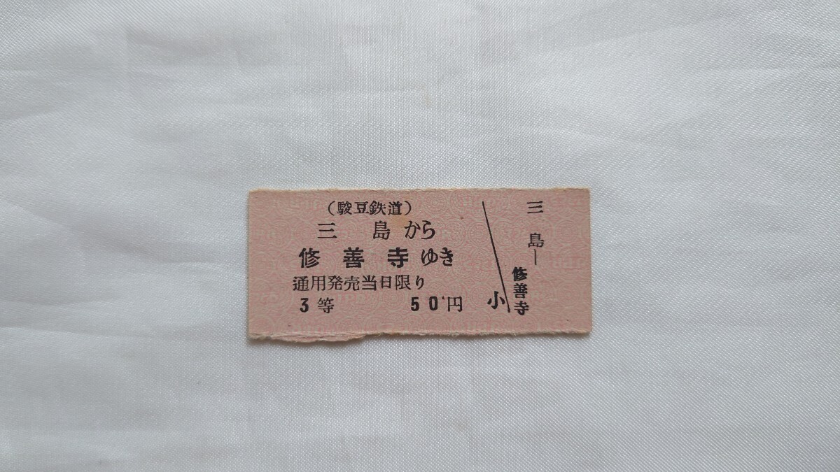 - ▽駿豆鉄道▽三島から修善寺ゆき乗車券3等▽半硬券