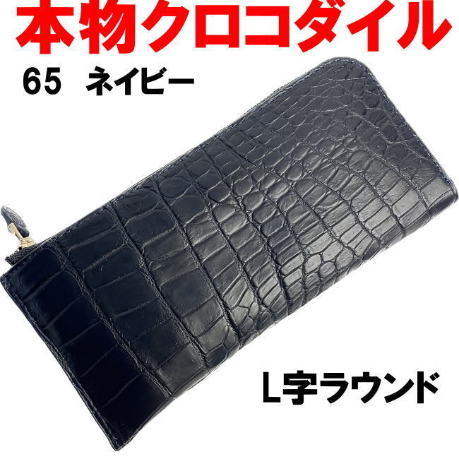 - ネイビー クロコダイル革 L字ラウンド長財布 65 新品本物