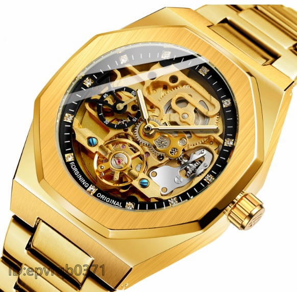 > 腕時計男性 機械式自動巻 新品 メンズ ウォッチ トゥールビヨンデザイン スケルトン 夜光表示 紳士用 通勤 /ゴールド