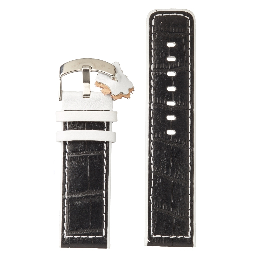 - スペイン Diloy 24mm カーフスキン レザー 腕時計ベルト 340ファッション クロコダイル型押し 本革(ブラックxホワイト)