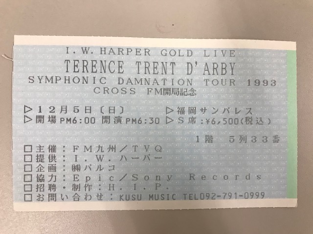 > テレンス トレント ダービー 1993年 来日公演 チケット TERENCE TRENT D'ARBY JAPAN TOUR TICKET サナンダ マイトレイヤ Sananda Maitreya