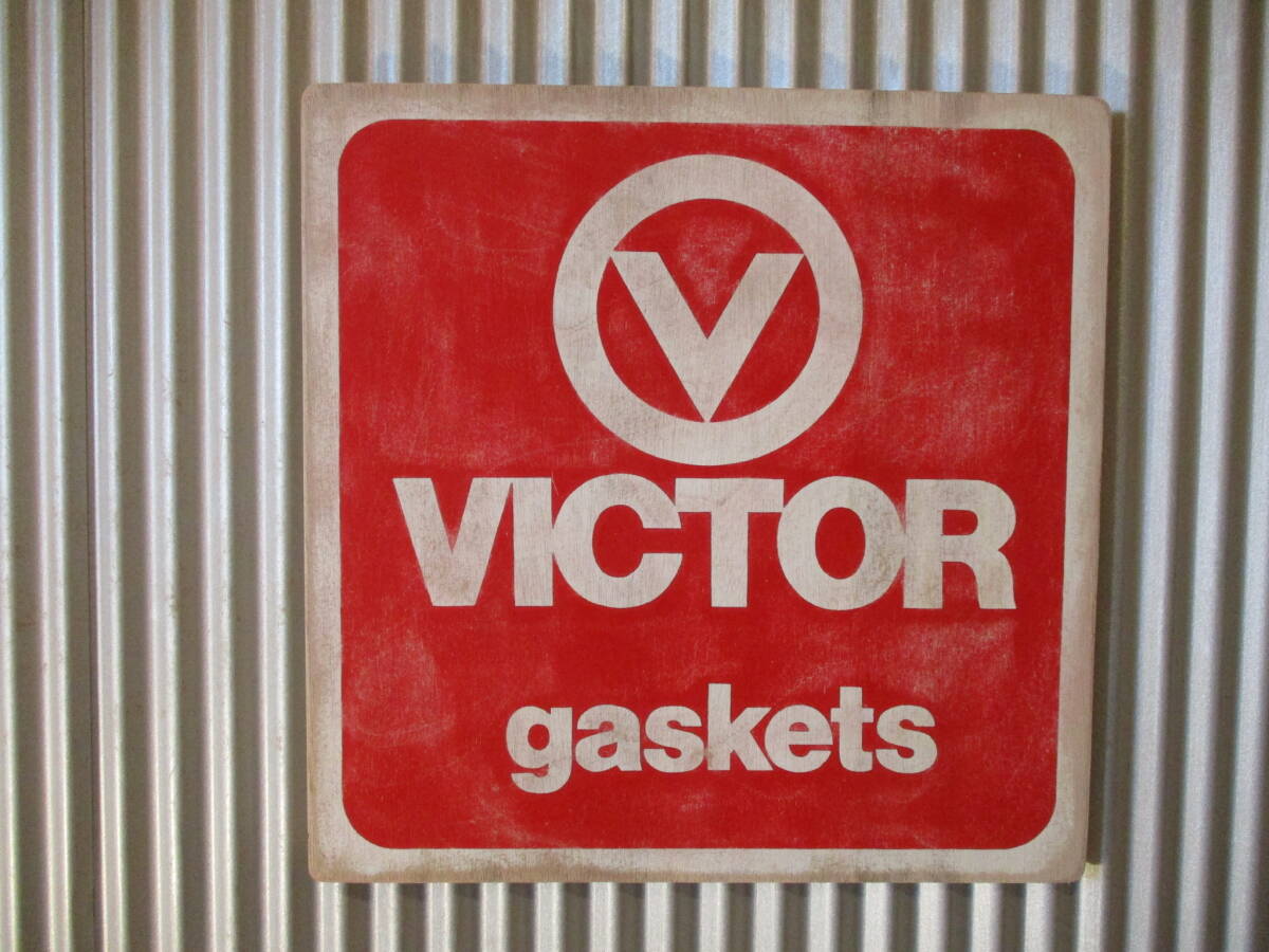 - インテリア木製看板 VICTOR GASKETS検)アドバタイジング企業販促ガレージカスタムFORDCHEVROLETDODGEBUICKUSA60s70s80s