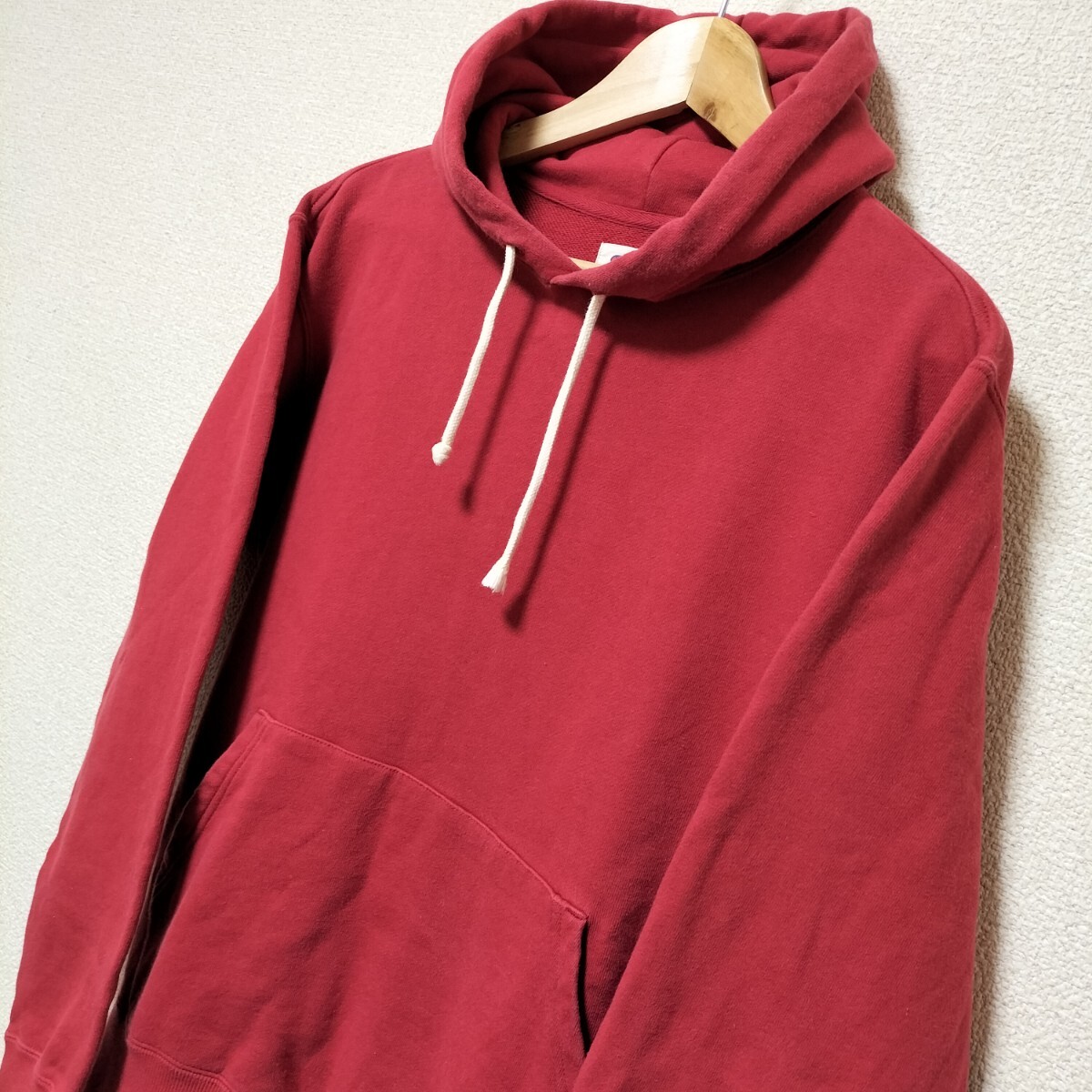 > ☆Campion スウェットパーカー トレーナー フード付 プルオーバー 裏パイル 赤 袖目あり トップス メンズ サイズM チャンピオン 古着 USED