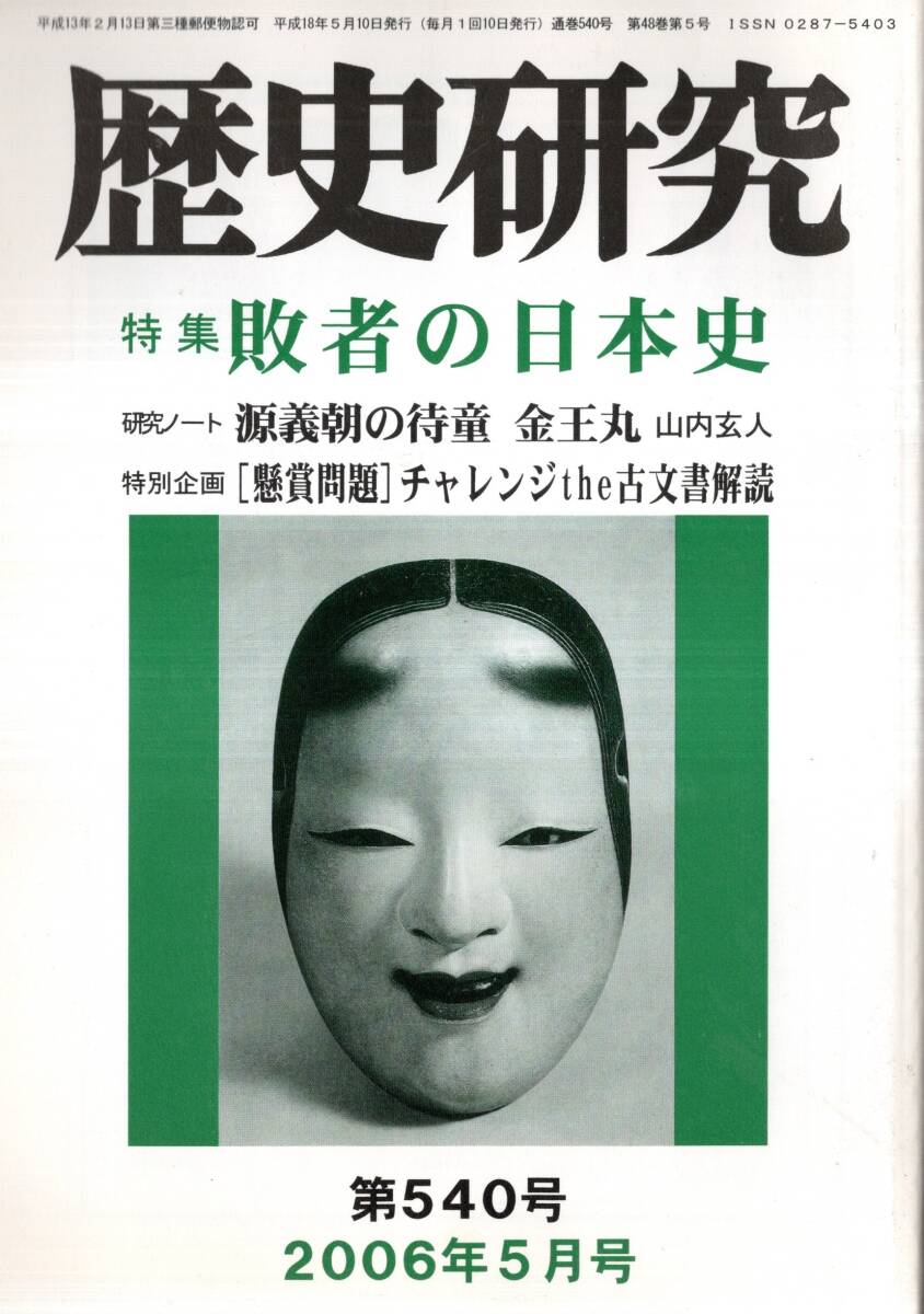 > ※歴史研究第540号特集敗者の日本史:山中鹿之助と鴻池・悲劇の武将武田四郎勝頼・悲運の人江藤新平等 源義朝の侍童金王丸の伝承と真実等