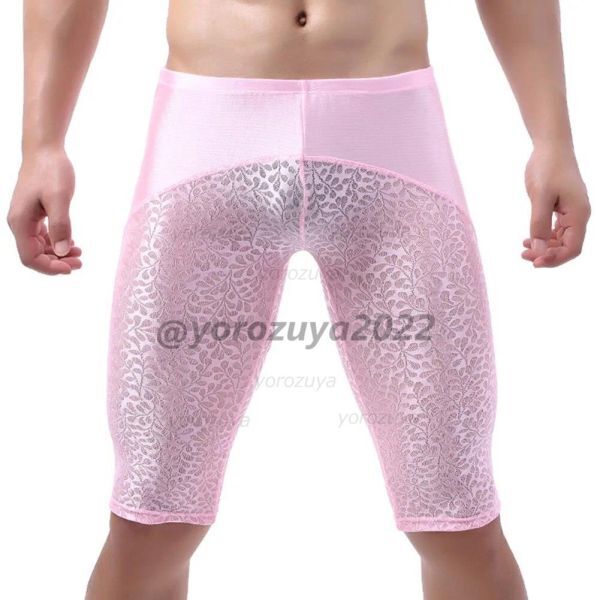 > 117-269-25 メンズ 光沢 艶々 メタリック ロングジョンズ パンツ【ピンク,Lサイズ】男性 ショーツ パンツ セクシー アンダーウェア.1