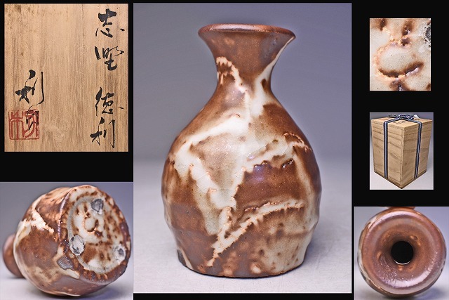 > 若尾利貞 ★ 志野徳利 ★ 共箱 ★ 岐阜県無形文化財保持者 ★ 鼠志野タイプ ★ 赤志野 ★ 美濃焼 ★ wakao toshisada ★ shino yaki