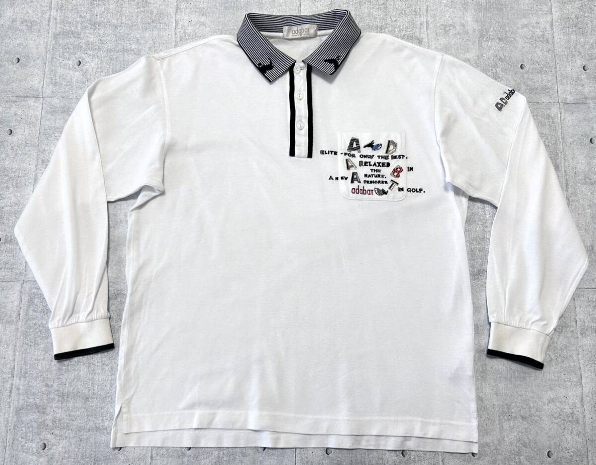 - adabat 鹿の子 長袖 ポロシャツ 刺繍ロゴ ロゴボタン ゴルフ スポーツ アダバット 日本製 ハイクオリティー 襟リブライン 早3719