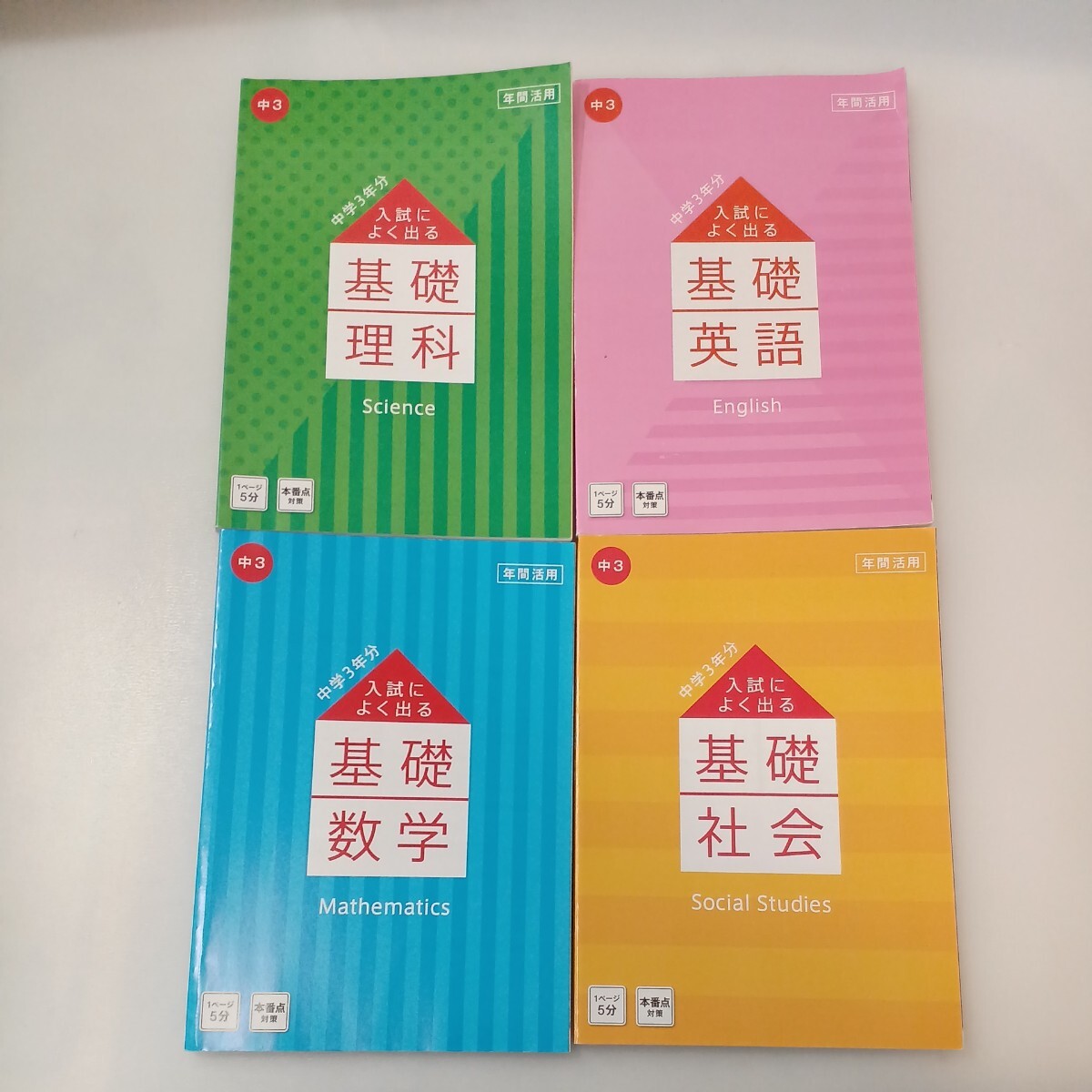 - zaa-568♪進研ゼミ中学講座受験中3 中学年分入試によく出る基礎英語/理科/社会/数学 計4冊セット