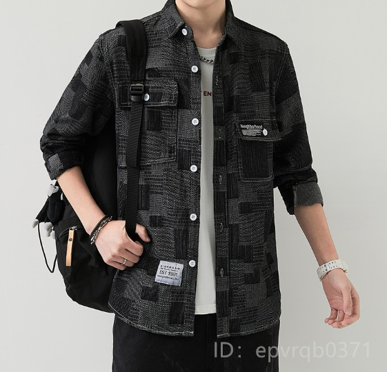 > デニムジャケット 新品 上質 メンズ ジージャン 長袖 チャック柄 折り襟 シャツ 紳士 トップス サイズ選択可能 /黒/XLサイズ