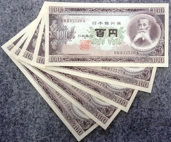 - ★旧百円札★板垣退助★日本銀行券B号★ピン札5連番!!