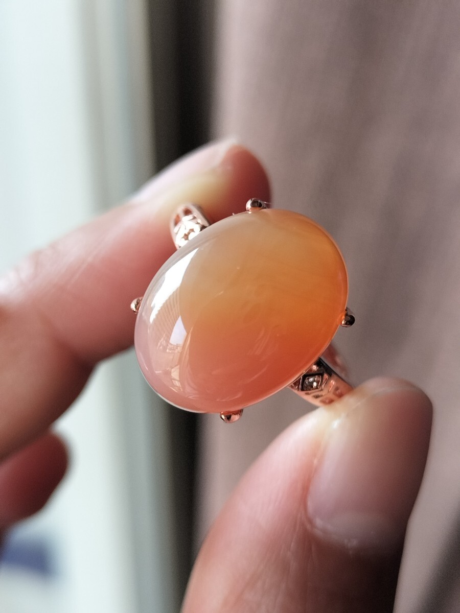 - 瑪瑙 メノー 源塩瑪瑙 優しいオレンジ 風水 縁起物 リング 指輪 フリサイズ