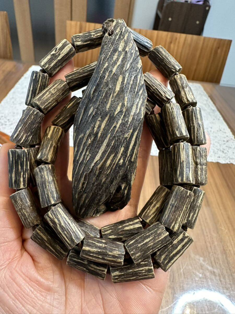 - T-428天然野生 ダラガン虫漏 老料虫漏 沈香 ネックレス ペンダント