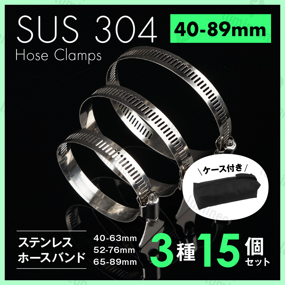 > ホース バンド ステンレス 製 40mm-89mm 3種15個 セット 工具 バッグ クリップ ホース クランプ サイズ 散水 パーツ 留め具 金具 g232l 1