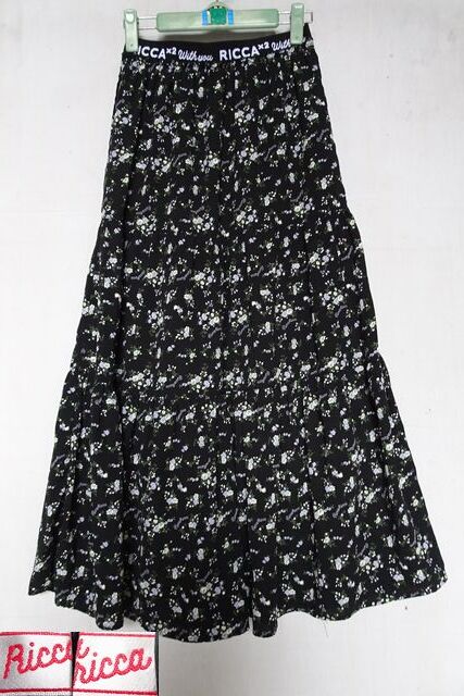> RICCA RICCA/リッカリッカ/ガールズ/フレアーロングスカート/小花柄/シフォン系素材/ティアード/黒/ブラック/160サイズ(4/23R6)