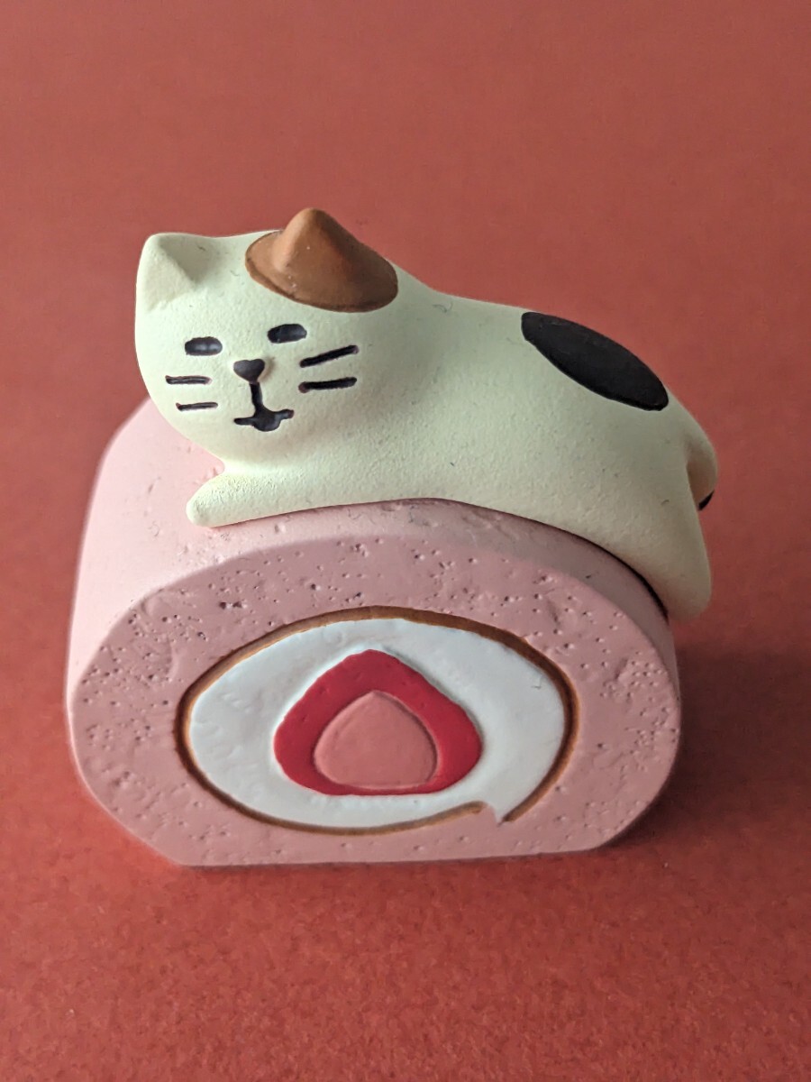 - 未使用 コンコンブル いちごロール子猫 ロールケーキ 猫 concombre DECOLE フィギュア 置物