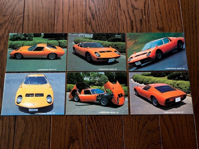 - ランボルギーニ・ミウラ P400SV スーパーカー カード 横13cm 縦8.8cm 昭和 当時物 計6枚 サーキットの狼 送料無料 底値
