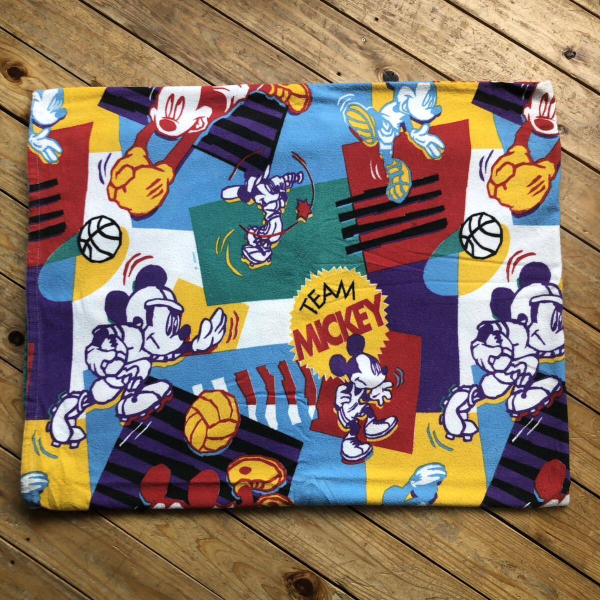 - USAヴィンテージ ミッキー スポーツ ベッドシーツ リメイク生地 カラフル コットン ディズニー フラットシーツ アメリカ仕入 総柄 B1966