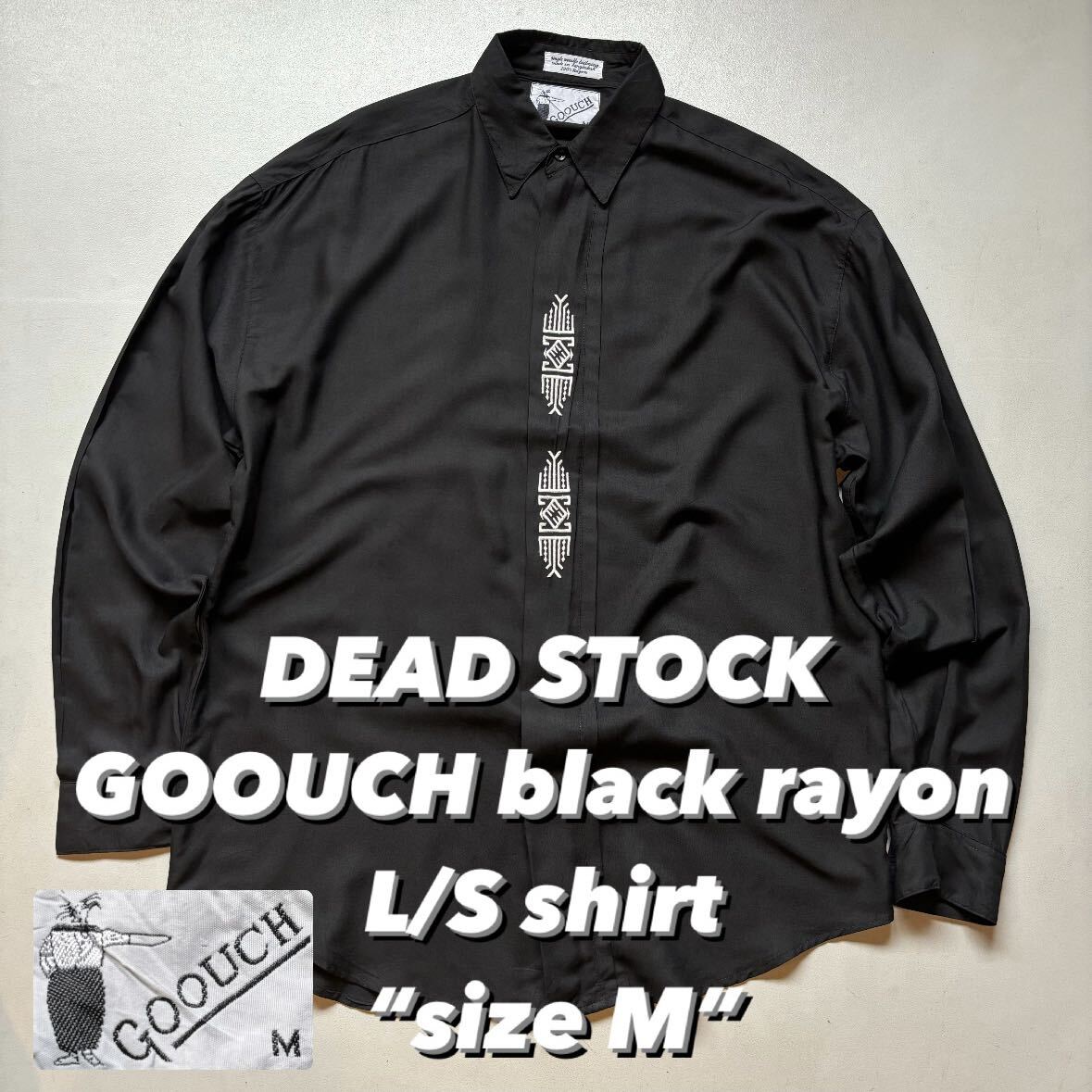 > DEAD STOCK GOOUCH black rayon L/S shirt “size M” デッドストック グーチ ゴーチ デザインシャツ ブラックレーヨンシャツ 比翼仕立て