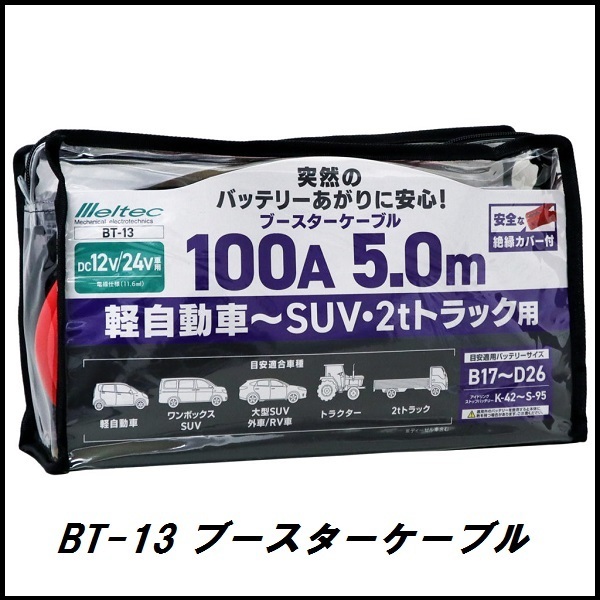 > 正規代理店 大自工業 BT-13 ブースターケーブル 100A/5メートル DC12V/24V用 メルテック/Meltec ココバリュー