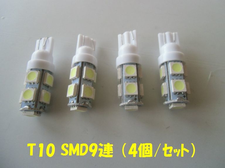 - 汎用9連LED T10ウエッジ球 【ホワイト×4個セット】