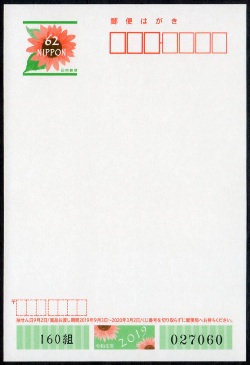 17793A9◆複数出品◆2019年 かもめ~る62円 ひまわり★\暑中見舞はがき 令和元年