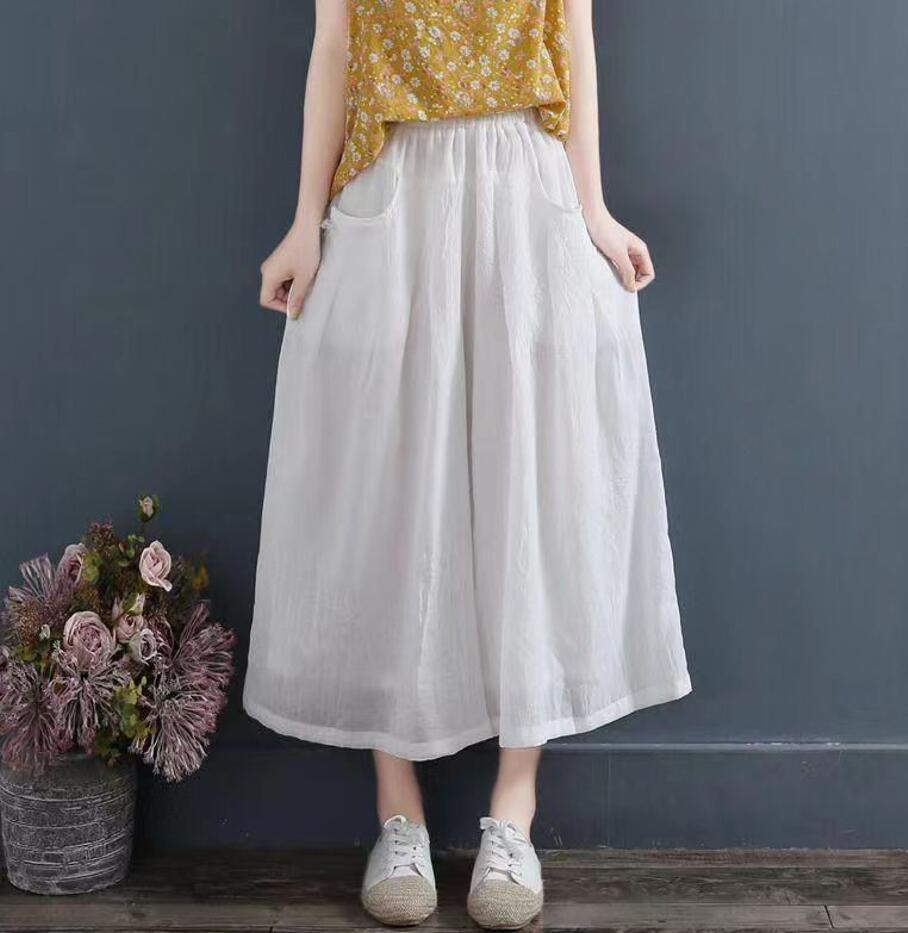 - 夏新品* ワイドパンツ 綿麻 レディース きれいめガウチョパンツ リネン パンツ ウエストゴム フレア ワイドパンツ パンツ *ホワイト