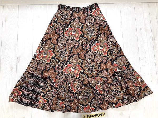- レディース ボタニカル ティアード フレア スカート 黒ブラウンオレンジ