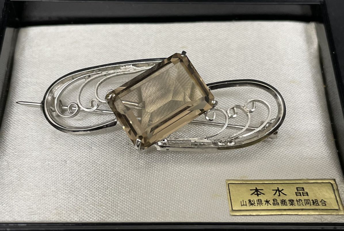 - 本水晶 ブローチアクセサリー ブラウン系 水晶