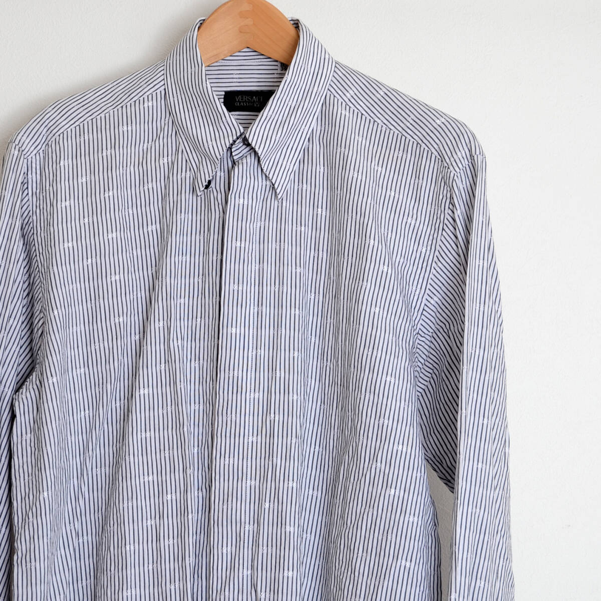 - AS464 ヴェルサーチ V2 長袖シャツ 15.5 / 39 M 肩45 比翼シャツ ストライプ メール便発送可 xq