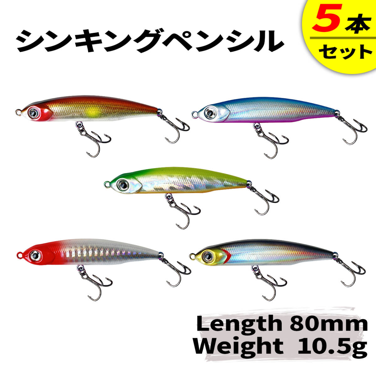 - 5個セット シンキングペンシル ルアー 光沢あり8㎝10.5g ハードルアー シンペン シーバスルアー メタルジグ