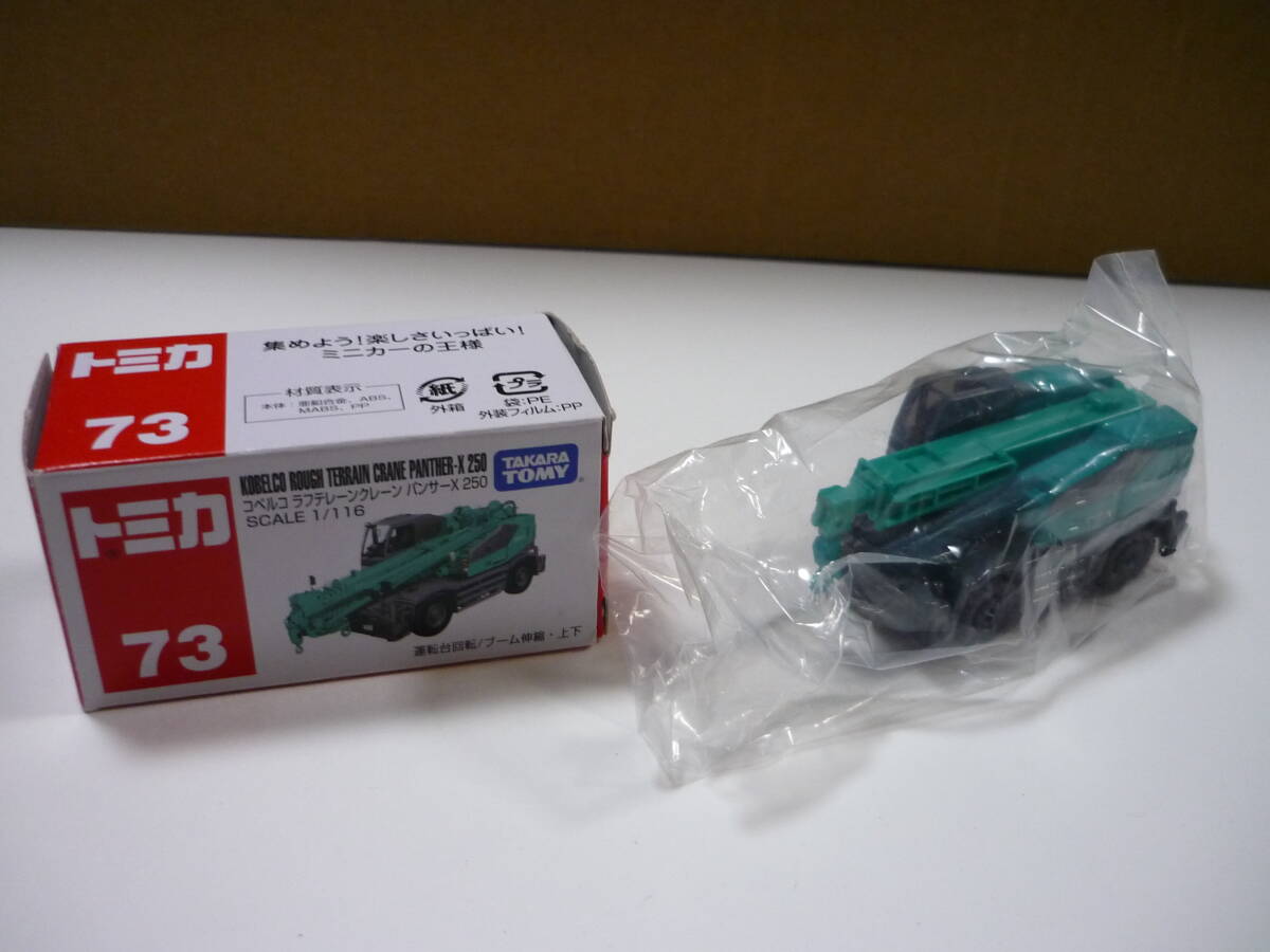 - [管01]【送料無料】ミニカー 1/116 コベルコ ラフテレーンクレーン パンサーX250 エメラルドグリーン「トミカ No.73」タカラトミー