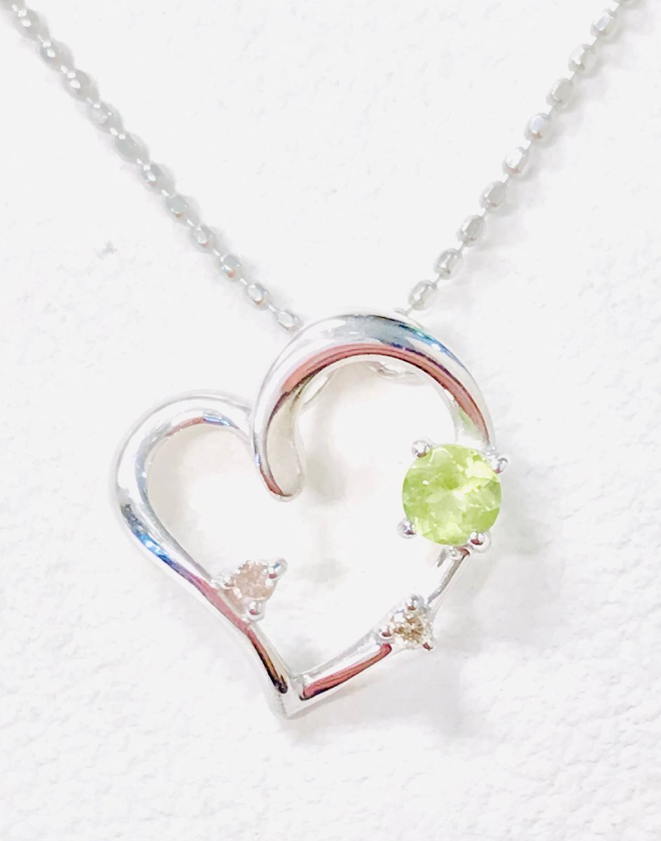 > K10WG ホワイトゴールド ペリドット ハートモチーフ ネックレス D0.02 qoj.YOU27