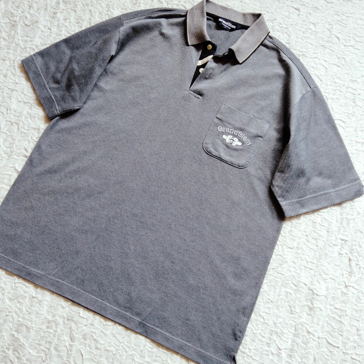 > マンシングウェア MUNSINGWEAR グランドスラム Grand Slam*半袖ポロシャツ*LLサイズ*グレー*刺繍*ペンギン*デサント*日本製