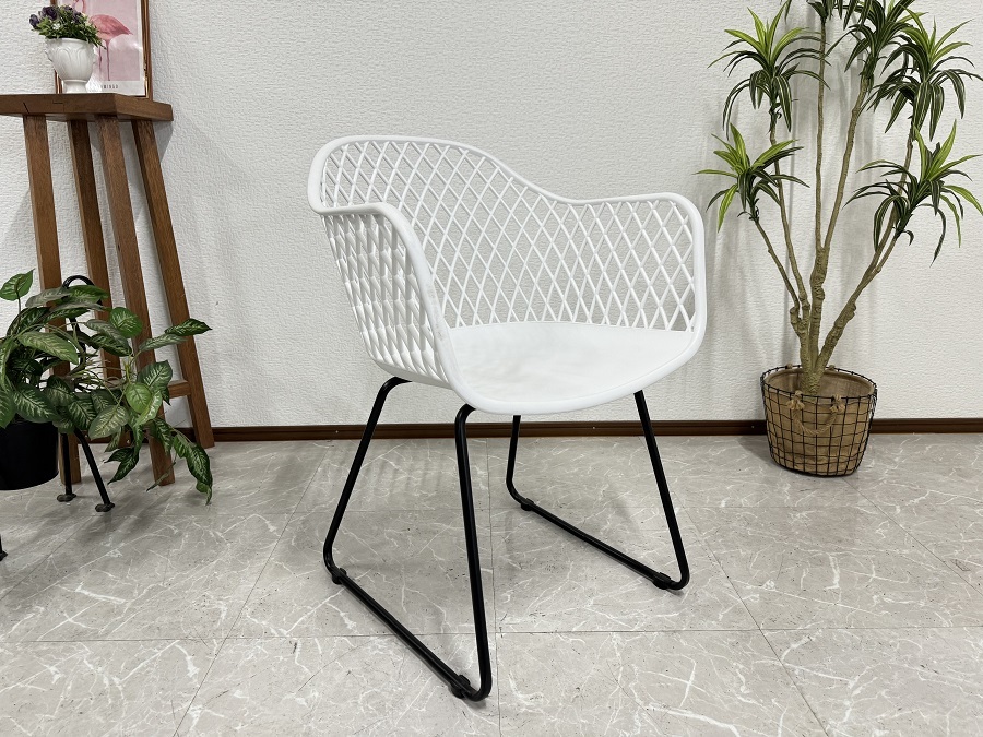 - アウトレット ダイニングチェア ホワイト 樹脂 肘あり プラン イス チェア おしゃれ 椅子 現品限り 60523E
