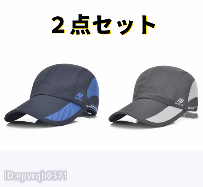 - 2点セット 野球帽 新品 通気速乾 メンズ ゴルフキャップ キャスケット 紳士 帽子 フリーサイズ 調節可能 ネイビー/ダークグレー