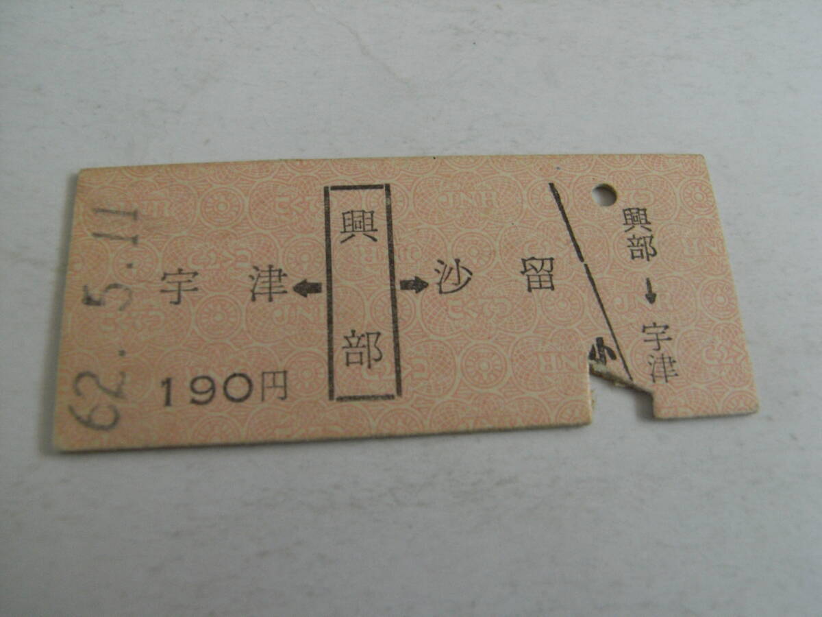 - 名寄本線 宇津←興部→沙留 190円 昭和62年5月11日 興部駅発行