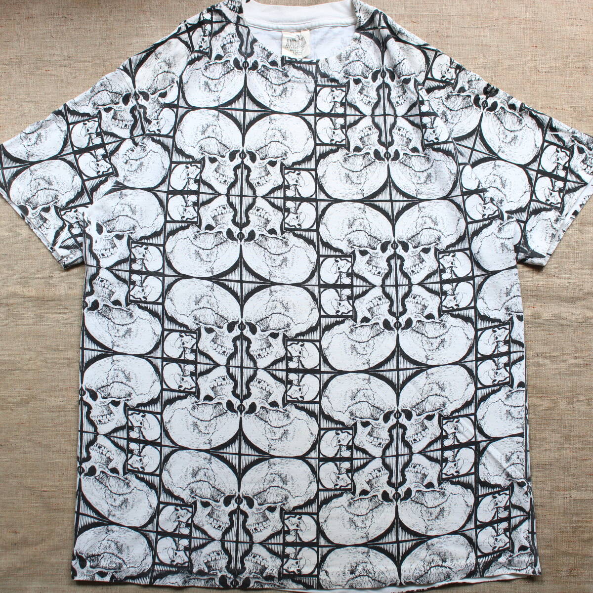 - レア 1990s Mc Escherエッシャー 総柄 スカル ヴィンテージTシャツ アート 古着USAアメリカ製 ゴッホ ピカソ モネ 画家 ANDAZIAドクロ 髑髏