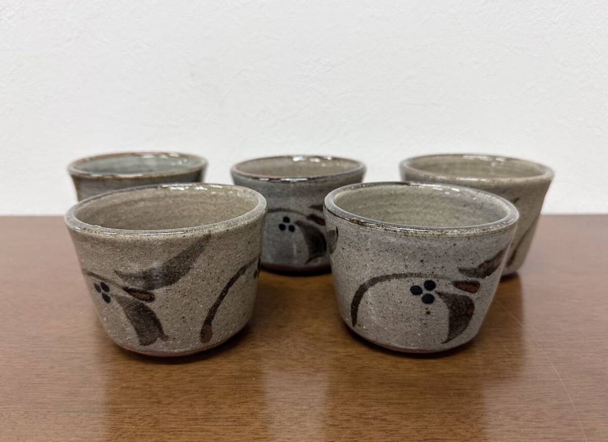 - 美品 絵唐津 湯呑み 茶器 陶器 フリーカップ 猪口 蕎麦猪口 5客セット 箱あり 和食器