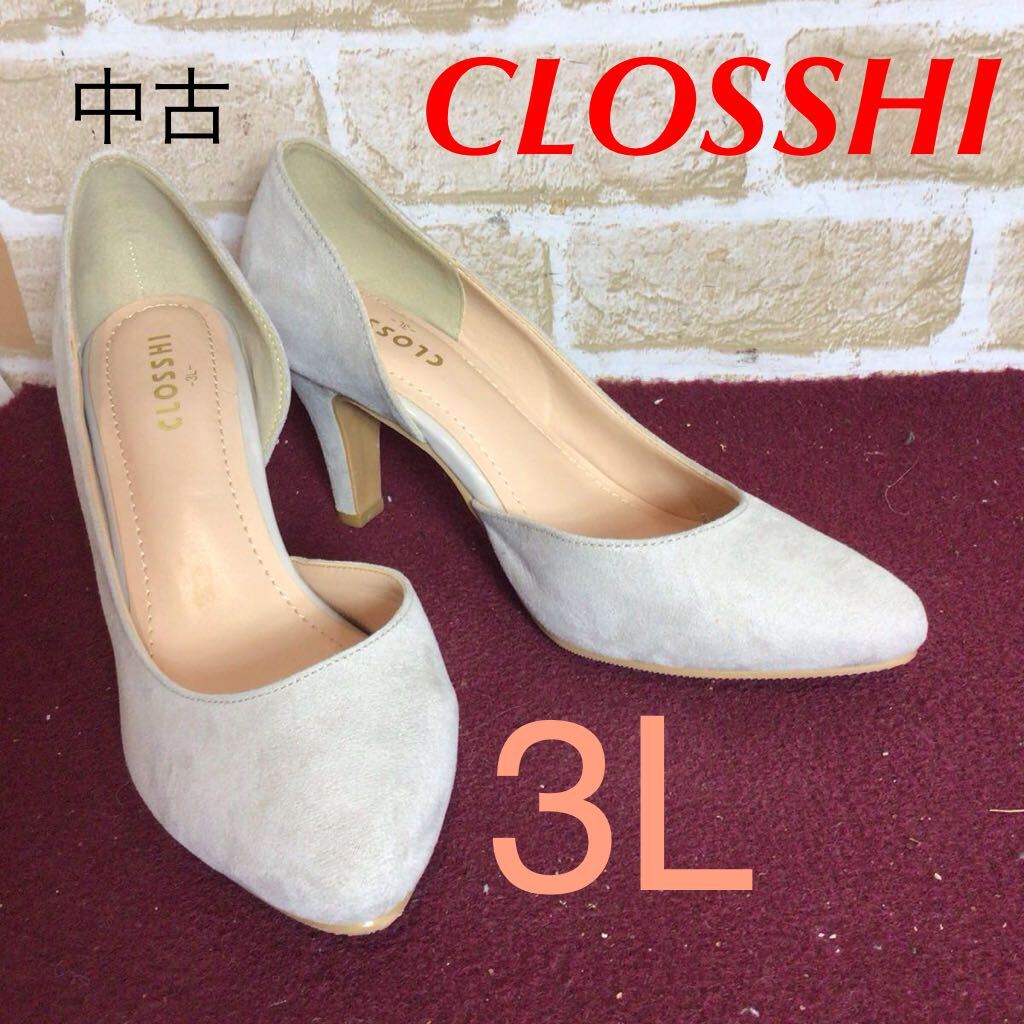 > 【売り切り!送料無料!】A-251 CLOSSHI!パンプス!グレー!灰色!3L!サイドオープンパンプス!スエード!おしゃれ!新品!