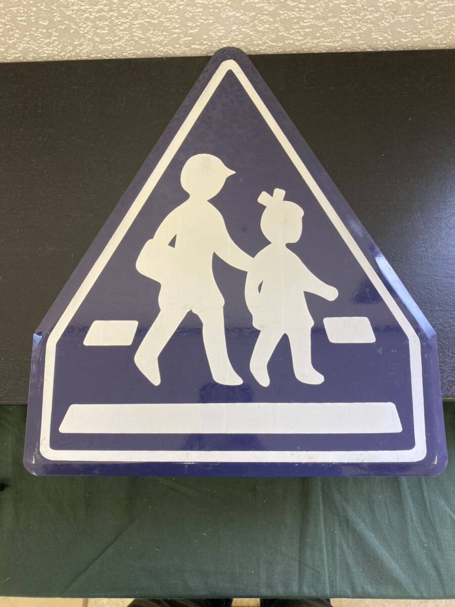 - 横断 交通標識 道路標識 雑貨 置物 インテリア アンティーク 看板 No.489