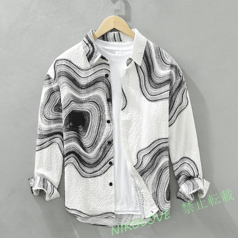 - 超希少 メンズシャツ 長袖シャツ ワイシャツ ヴィンテージ アロハシャツ 総柄シャツ シワ感 カジュアル 心地良し M~3XL LD684