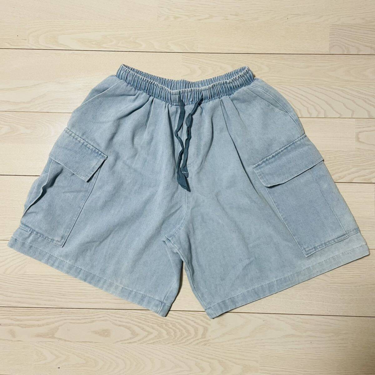 - デニム地 薄生地 ショートパンツ オーバーサイズ ハーフパンツ メンズ M