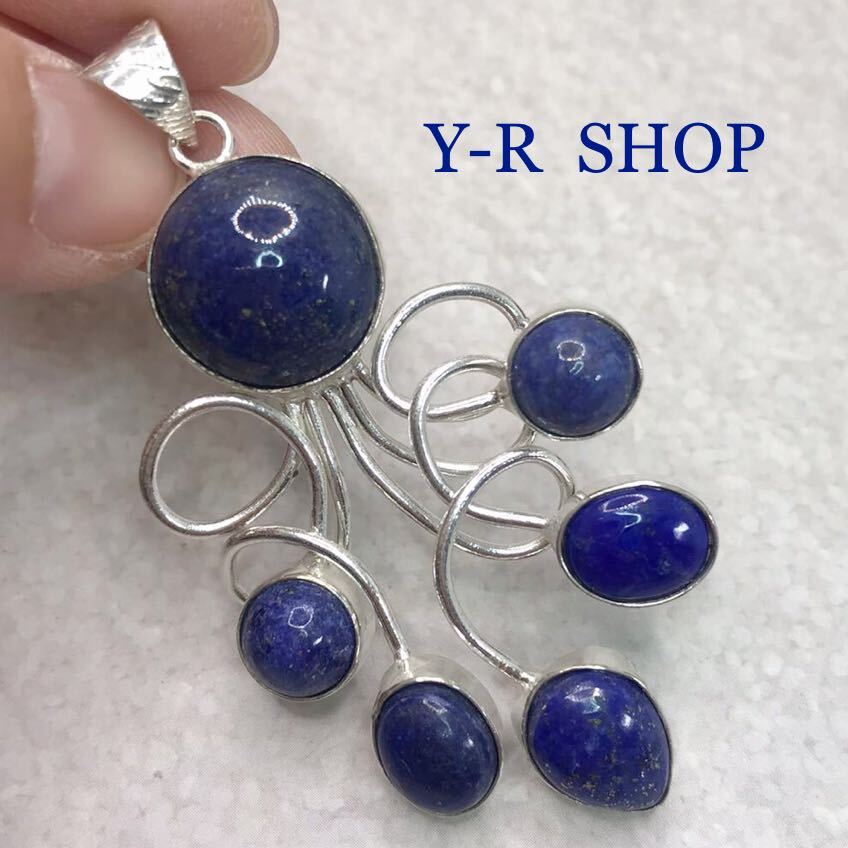 - 天然石★ラピスラズリのエスニックペンダントトップ ★レディースメンズネックレスシルバー 925刻印アジアン雑貨カラーストーン新品宝石Y-R