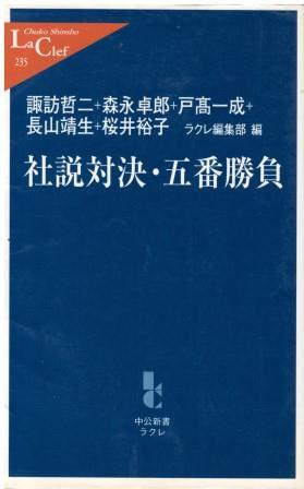 - (古本)社説対決・五番勝負 諏訪哲二他 中央公論社 S06237 20070110発行
