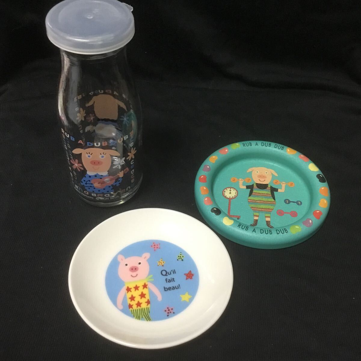- ラブアダブダブ ブタさん3点セット 牛乳瓶お皿トレイモンスイユ