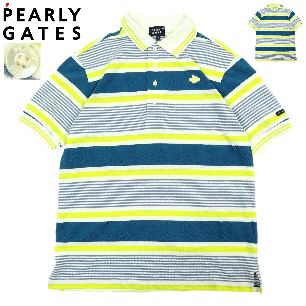 - 【B3056】【美品】PEARLYGATES パーリーゲイツ ポロシャツ ゴルフウエア トップス ボーダー ロゴ サイズ4